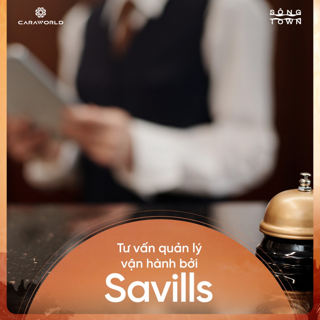 CaraWorld, trong đó có Sông Town, được tư vấn quản lý và vận hành bởi Savills, một trong những công ty bất động sản hàng đầu thế giới với hơn 160 năm kinh nghiệm. Sự đồng hành của Savills không chỉ đảm bảo chất lượng dịch vụ đạt chuẩn quốc tế mà còn mang lại sự an tâm tuyệt đối cho cư dân và nhà đầu tư. Đồng thời giúp nâng cao giá trị bất động sản qua thời gian, gia tăng sức hút của CaraWorld trên thị trường.