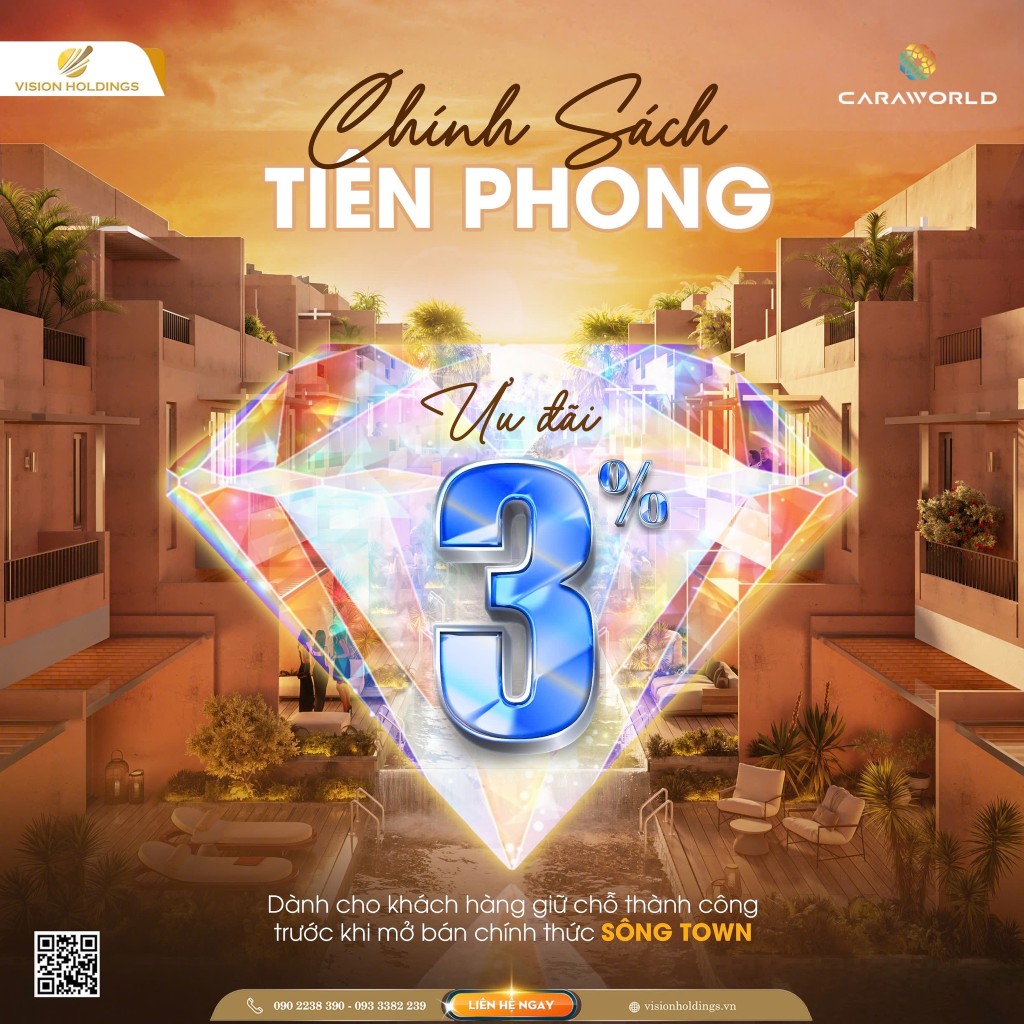Chính sách tiên phong ưu đãi 3% dành cho khách hàng giữ chỗ thành công trước khi mở bán chính thức Sông Town