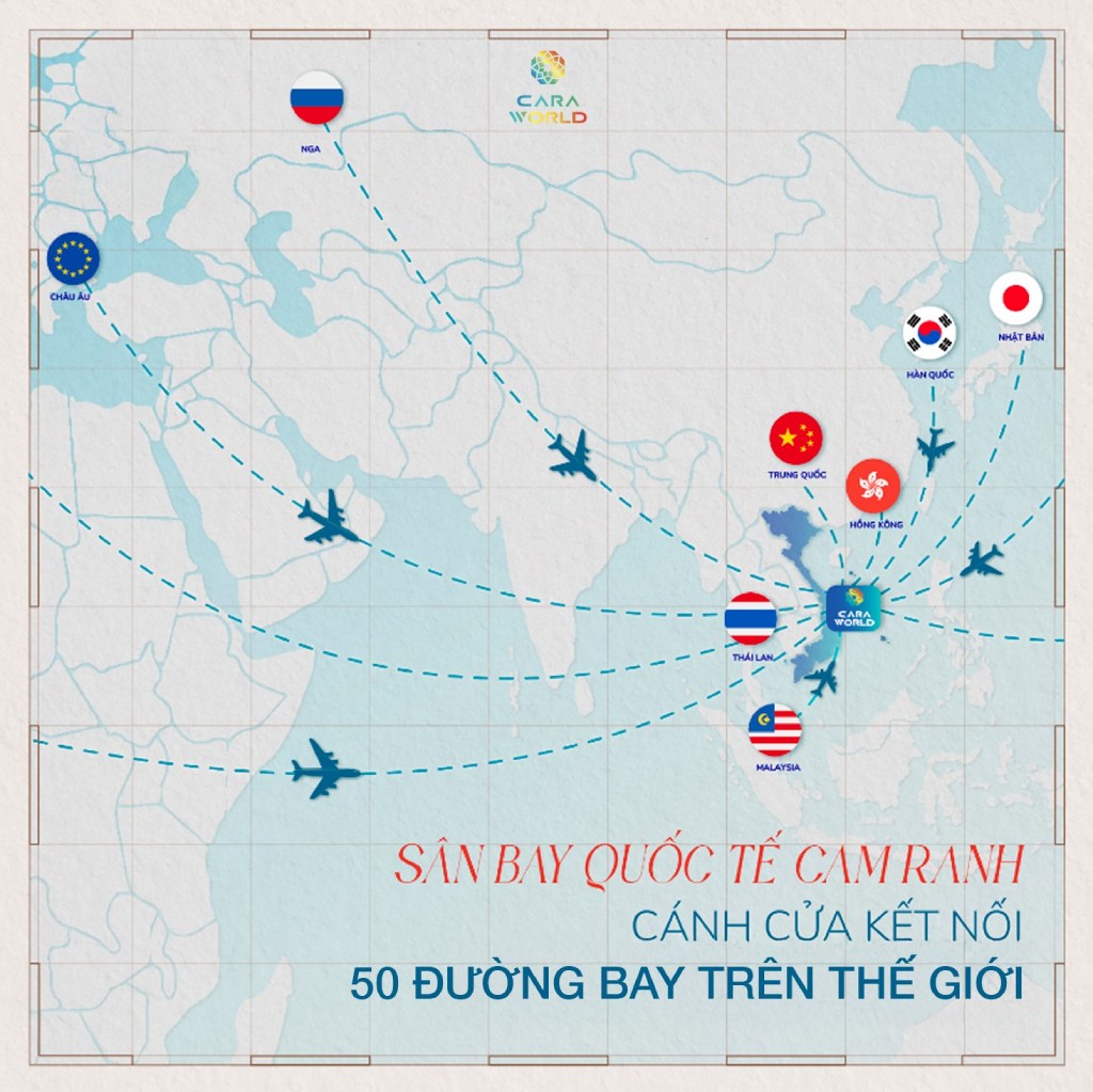 Sân bay quốc tế Cam Ranh là cửa ngõ chào đón hàng triệu lượt khách quốc tế ghé thăm mỗi năm. Điều này tạo ra một nguồn khách dồi dào và thụ động, dễ dàng kết nối và thúc đẩy sự phát triển của CaraWorld Cam Ranh.