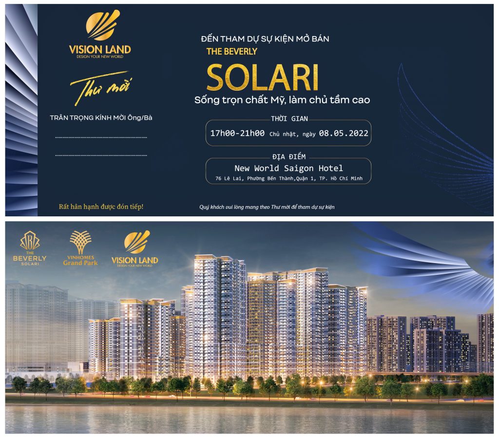 Sản phẩm căn hộ cuối cùng của Vinhomes Grand Park được chủ đầu tư Vinhomes chính thức cho ra mắt, sau sự kiện kick-off ngày 19/4 và chuỗi sự kiện khai trương sa bàn của The Beverly Solari từ ngày 26-28/4.