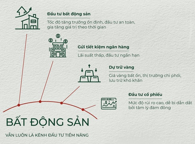 Trong khi đó, đầu tư bất động sản ghi nhận tốc độ tăng trưởng lợi nhuận khoảng 15%/năm. Mức tăng trưởng này đến từ triển vọng có cơ sở là tốc độ đô thị hoá mạnh mẽ, sự tăng trưởng kinh tế cao, đi kèm hạ tầng còn nhiều dư địa phát triển. Vì thế, trong 20 năm tới các BĐS gần trường, chợ, bệnh viện có quy hoạch đồng bộ sẽ là kênh đầu tư an toàn và có thể gia tăng giá trị cao.
