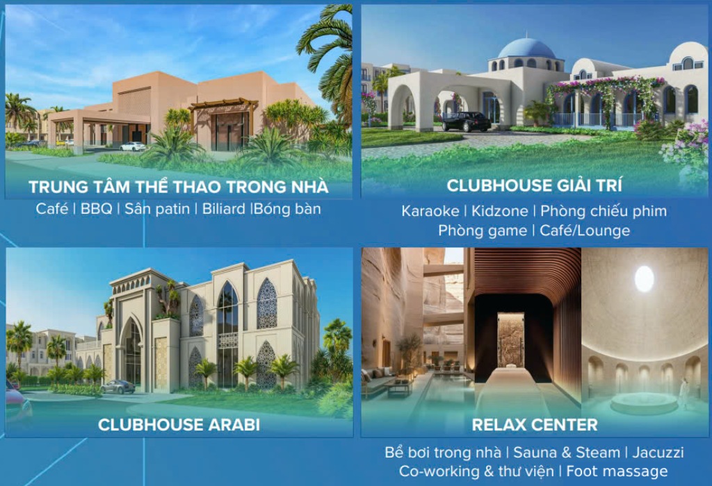 • Clubhouse Arabi: Một không gian độc đáo với phong cách thiết kế Arabi, mang lại trải nghiệm văn hóa mới lạ cho cư dân và du khách.