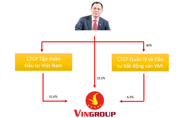 Bên cạnh phần sở hữu trực tiếp, CTCP Tập đoàn Đầu tư Việt Nam – một công ty do ông Vượng nắm quyền chi phối – hiện đang là cổ đông lớn nhất sở hữu 32,6% cổ phần của Vingroup. Ngoài Vingroup và CTCP Tập đoàn Đầu tư Việt Nam, hiện chủ tịch Vingroup còn đang trực tiếp nắm giữ vốn của VinFuture, VinES và công ty Asian Star Trading & Investment.