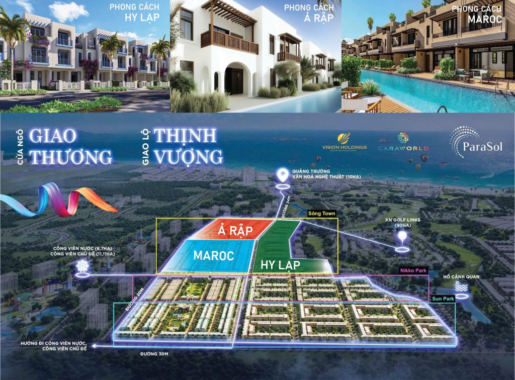Với 3 phong cách thiết kế độc đáo lấy cảm hứng từ Ma Rốc, Hy Lạp và Ả Rập, Sông Town hứa hẹn sẽ mang đến một trải nghiệm sống hoàn toàn mới lạ. Từ những đường nét uyển chuyển, hoa văn tinh xảo của kiến trúc Ả Rập, đến sự mộc mạc, ấm cúng của kiến trúc Maroc, hay vẻ đẹp lãng mạn, thơ mộng của kiến trúc Hy Lạp, mỗi tiểu khu tại Sông Town đều mang một vẻ đẹp riêng biệt, đáp ứng mọi sở thích của cư dân.