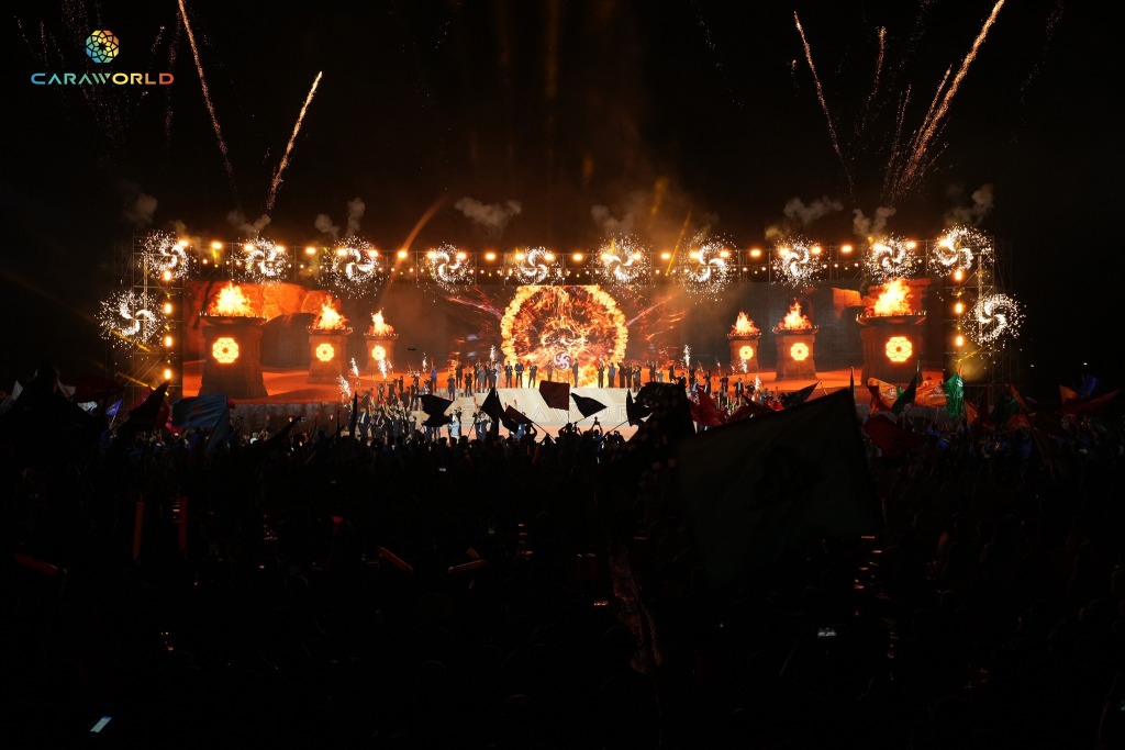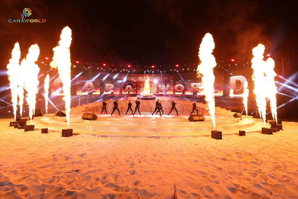 Sân khấu nổi bật với hệ thống ánh sáng hiện đại, màn hình LED dài kỷ lục và thiết kế độc đáo tái hiện hình ảnh một vùng sa mạc – biểu tượng gắn liền với hành trình kiến tạo Siêu đô thị biển CaraWorld. Đây không chỉ là nơi diễn ra chương trình mà còn là trái tim của sự kiện, nơi CaraWorld gửi gắm tinh thần “trỗi dậy” mạnh mẽ và khát vọng tạo nên những giá trị khác biệt, độc nhất.